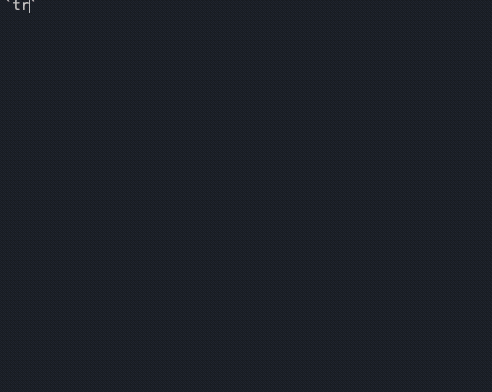 输入 `test,再输入 空格、Tab、回车 等按键即可触发补全: